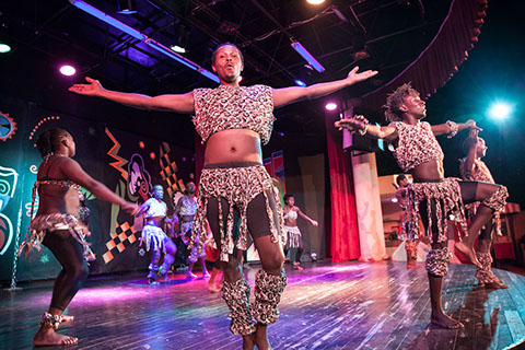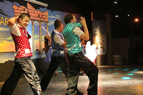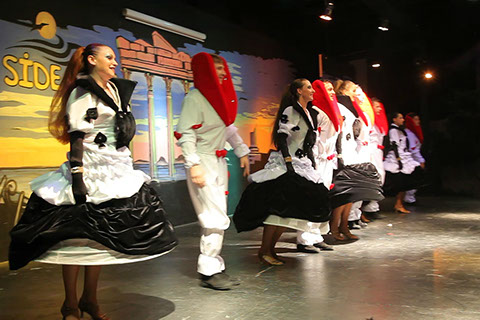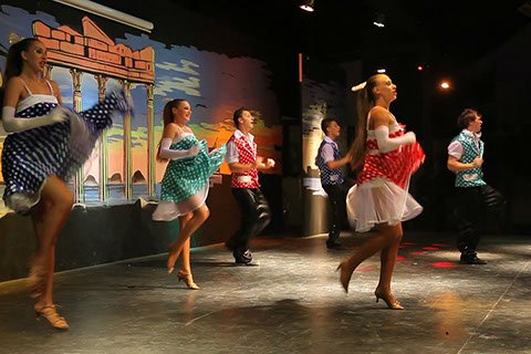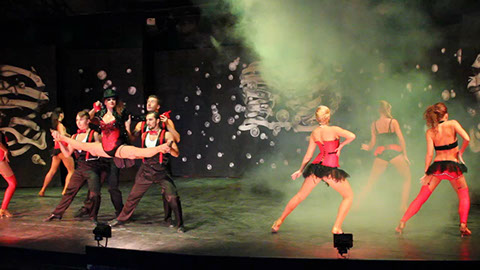 Entertaining theatrical show that is close to the musical genres, cabaret and vaudeville. The main elements